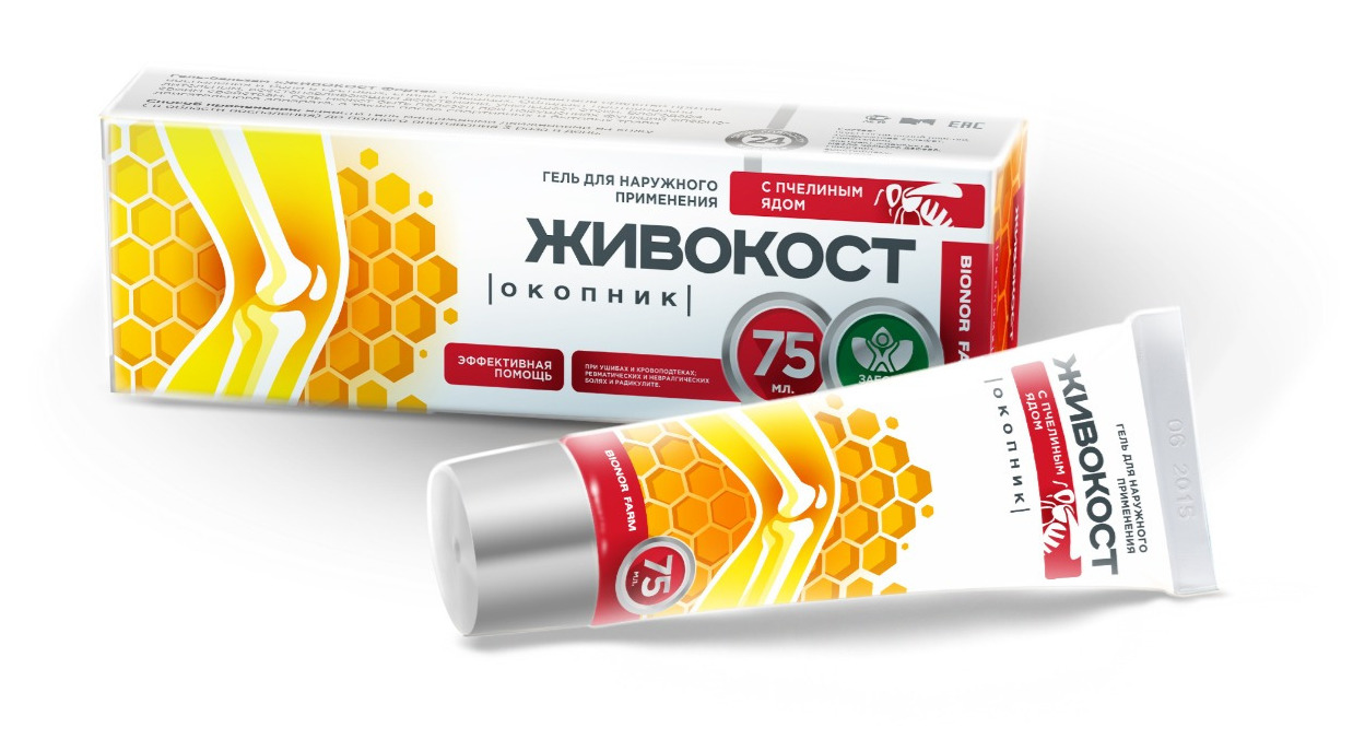 Гель-бальзам «Живокост (окопник) с пчелиным ядом» для тела – многокомпонентное средство, для ухода за кожей в области суставов. Основу геля составляют экстракт живокоста и важные составляющие части хряща: хондроитина сульфат и глюкозамин. Сочетание активных компонентов обеспечивает высокую эффективность геля, активизирует процессы обмена веществ.